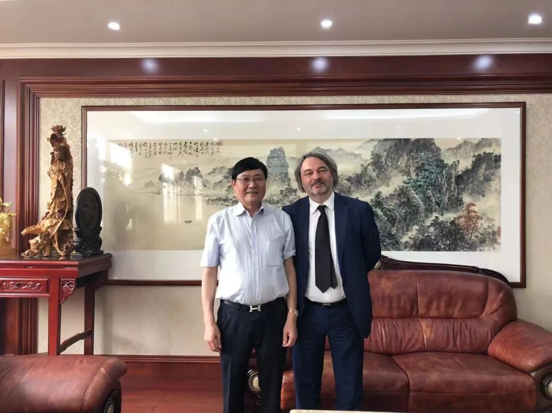 ▲現(xiàn)任世界國際音樂比賽聯(lián)盟主席凱涅夫先生2018年親臨海倫鋼琴參觀并與陳海倫董事長合影