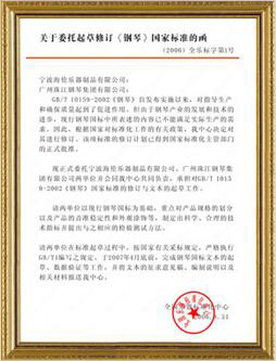 2006年,海倫鋼琴接受全國樂器標準化中心委托,開始起草修訂《鋼琴》國家標準(GB/T10159-2008),該標準于2009年開始實施。