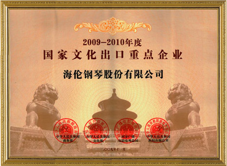 海倫鋼琴成為我國2009-2010年度的文化出口重點企業之一