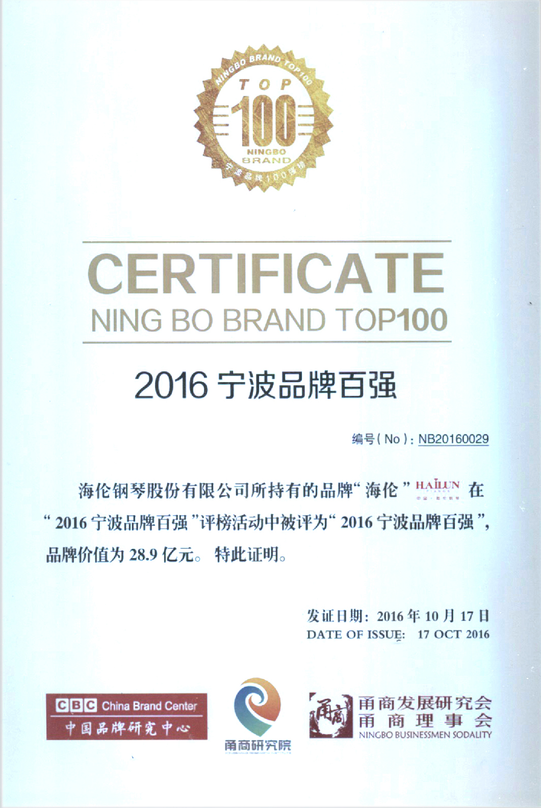 海倫鋼琴品牌在“2016寧波品牌百強”評榜活動中被評為“2016寧波品牌百強”。